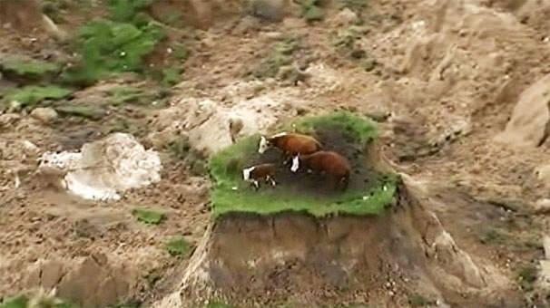 Depremin merkez üssüne yakın konumdaki Kaikoura kasabasında bir toprak parçası üzerinde mahsur kalan ineklerin görüntüsü ise büyük ses getirdi ve dünya medyasında haber oldu.