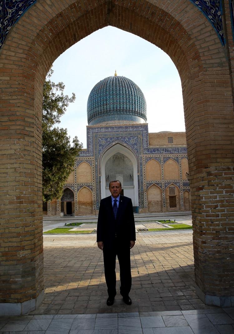 Cumhurbaşkanı Erdoğan, Registan Meydanı’nı ziyaret etmek için türbeden ayrıldı.