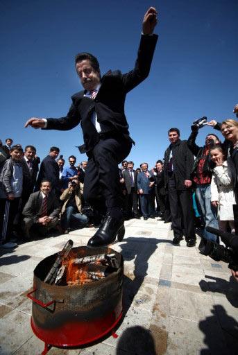 DEVLET BAKANI FARUK CELIK, TURKSOY GENEL SEKRETERLIGININ NEVRUZ KUTLAMALARI CERCEVESINDE ANKARA GENCLIK PARKI'NDA YAKILAN NEVRUZ ATESININ UZERINDEN ATLADI.