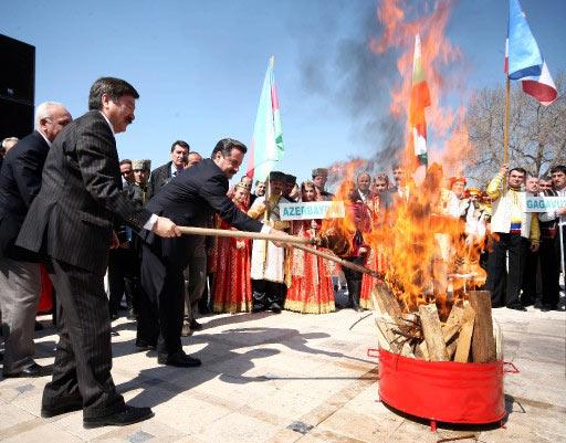 DEVLET BAKANI FARUK CELIK, TURKSOY GENEL SEKRETERLIGININ NEVRUZ KUTLAMALARI CERCEVESINDE ANKARA GENCLIK PARKI'NDA TURKSOY GENEL SEKRETERI DUSEN KASIENOV'LA BIRLIKTE NEVRUZ ATESI YAKTI. (ANADOLU AJANSI - FIRAT YURDAKUL)