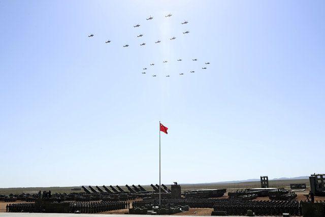 Çin Merkez Televizyonu'ndan (CCTV) canlı yayınlanan törende, yaklaşık 12 bin asker, 600 parça askeri teçhizat ve 100'den fazla uçak yer aldı.