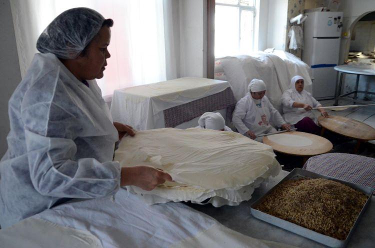 Baklavanın yaklaşık 200 yıllık bir geçmişi olduğunu kaydeden Uysal, "Baklavayı ilk önce yoğurarak hazırlıyoruz. En önemli aşaması bezelerin dinlenmesi aşamasıdır.