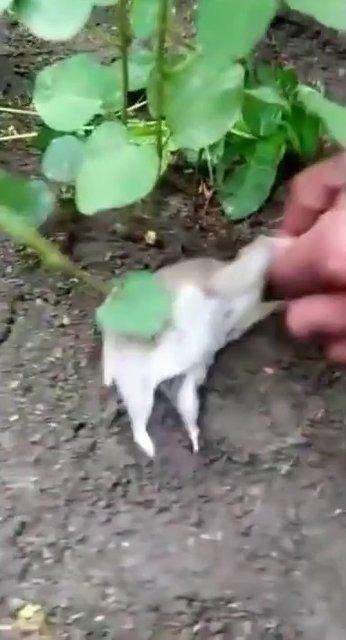 Kayıttan sonra çiftçi, kemirgeni evine götürüp soya filizini hayvanın sırtından çıkardığı açıklandı.