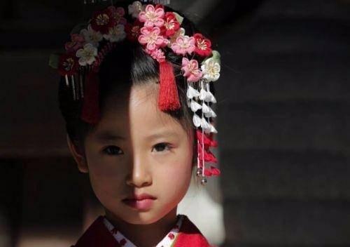 Japonya’da her yıl düzenlenen, çocukların büyümesinin kutlanıp gelecekleri için dua edildiği festivalde kimono giyen bir kız babasının objektifine poz veriyor.