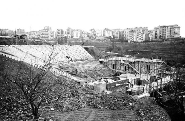 Harbiye Cemil Topuzlu Açıkhava Tiyatrosu (ya da eski adıyla Harbiye Açıkhava Tiyatrosu) inşaatı.. 1946..