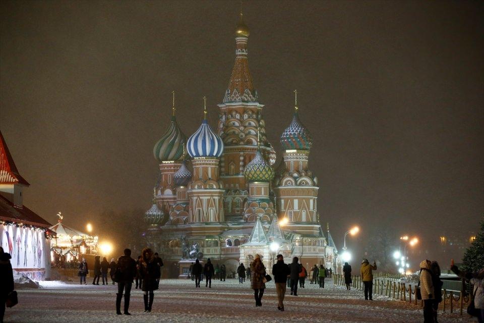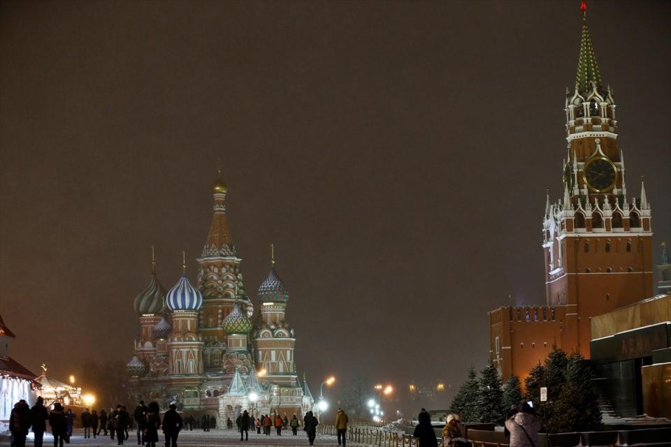 Rusya'nın başkenti Moskova'da gün boyu etkili olan kar yağışı, akşam saatlerinde fırtınaya dönüştü. Moskovalılar, kar yağışının tadını tarihi Kızıl Meydan'da yürüyüş yaparak çıkardı.