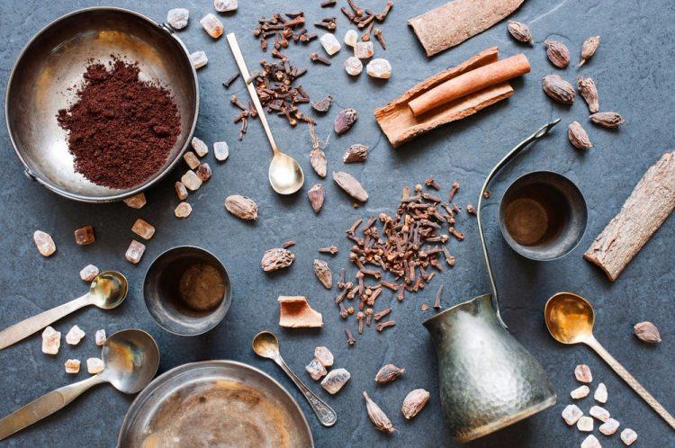 Koyu kıvamlı kahve; kakule, karabiber, tarçın, karanfil gibi sıcak baharatları bir araya getiren kokulu karışımdır.