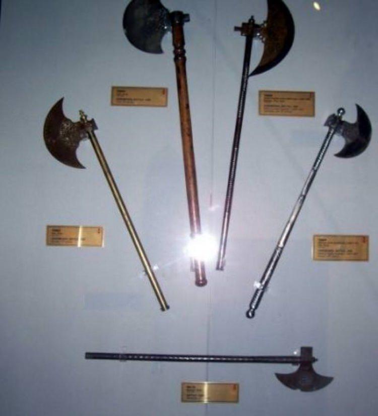 İki el ile tutulmak suretiyle kullanılan savaş aletidir. Görselde 16.-17Yüzyıla ait çeşitli türk yapımı teberler gösterilmektedir.