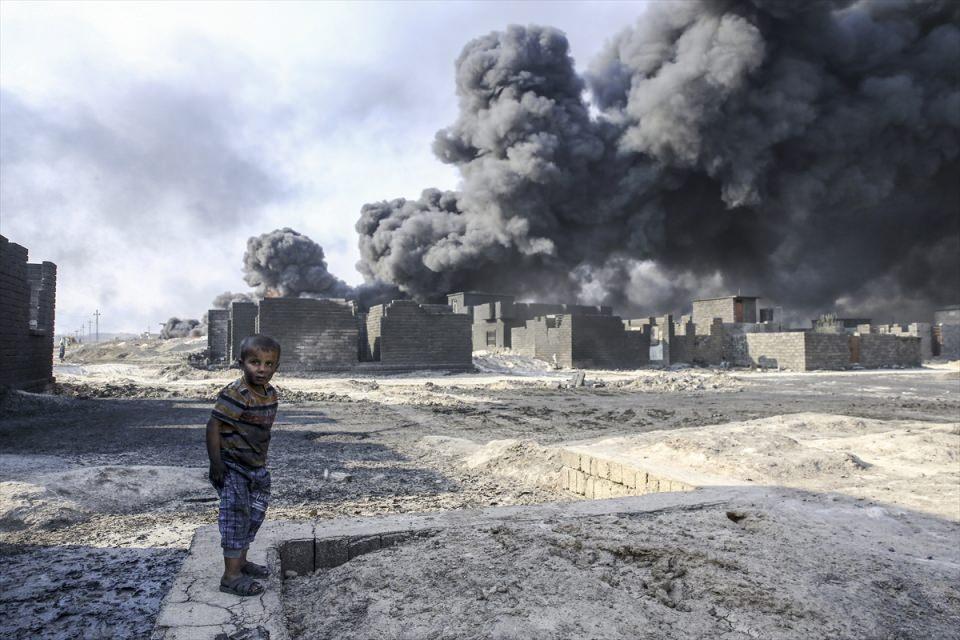 Terör örgütü DEAŞ'ın ateşe verdiği Musul'un Kayyara kasabasındaki ham petrol kuyusu bölge sakinleri ve özellikle de çocukların hayatını tehdit ediyor.