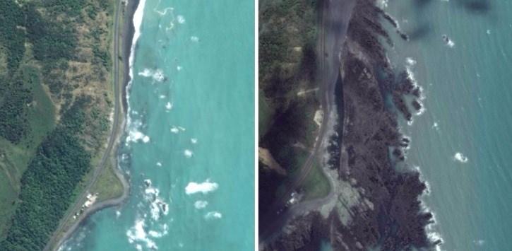 Bölgede Mart 2016’da kaydedilen fotoğraflar ile deprem sonrasında çekilen kareler arasındaki fark, görüntülere böyle yansımıştı.