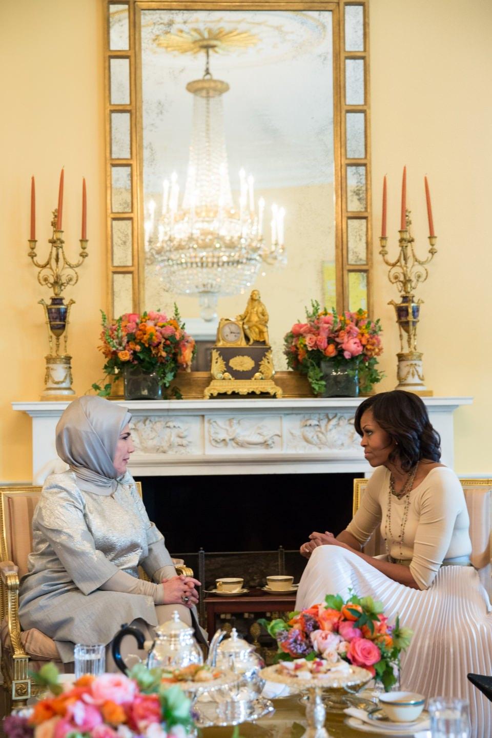 ABD Başkanı Barack Obama'nın eşi Michelle Obama ve Cumhurbaşkanı Recep Tayyip Erdoğan'ın eşi Emine Erdoğan Beyaz Saray'da.
