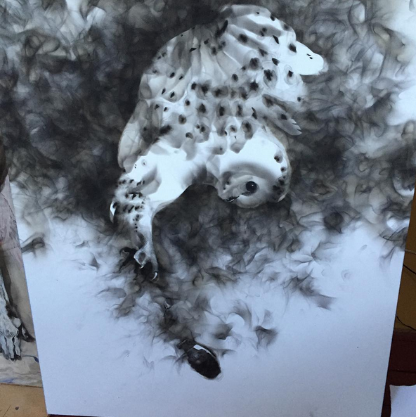 Ateşle resim çiziyor!
