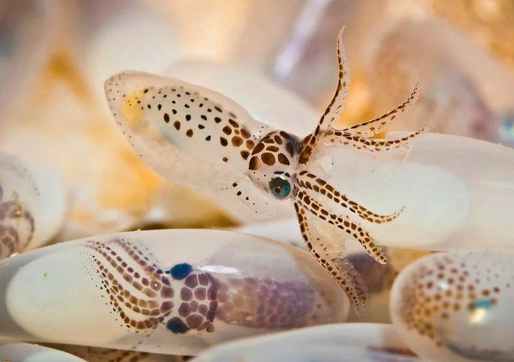 Yumurtalarından çıkan bebek ahtapotlar.