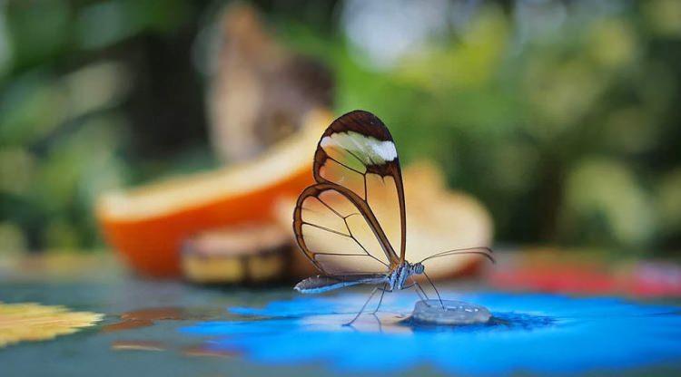 Zarafetiyle büyüleyen cam kanatlı kelebek.