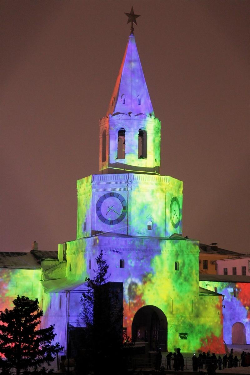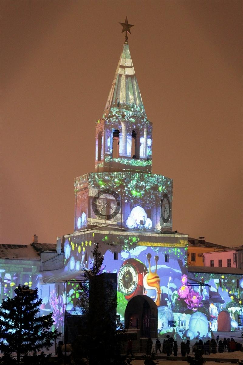 Rusya Federasyonu'na bağlı Tataristan Cumhuriyeti'nin başkenti Kazan'da bulunan Kazan Kremlini'ndeki Spas Minaresi'nde, yılbaşı kutlamaları öncesi üç boyutlu ışık şovu düzenlendi.