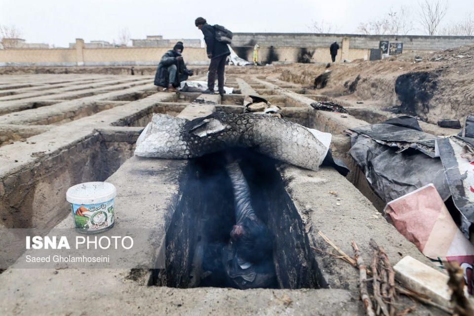 Belediyenin kazdığı boş mezarlarda yaşayan bu kişiler, birkaç gündür bölgede etkili olan yağmurdan korunmak için mezar üstünü naylonumsu materyallerle kapatarak battaniye ile ısınıyor.