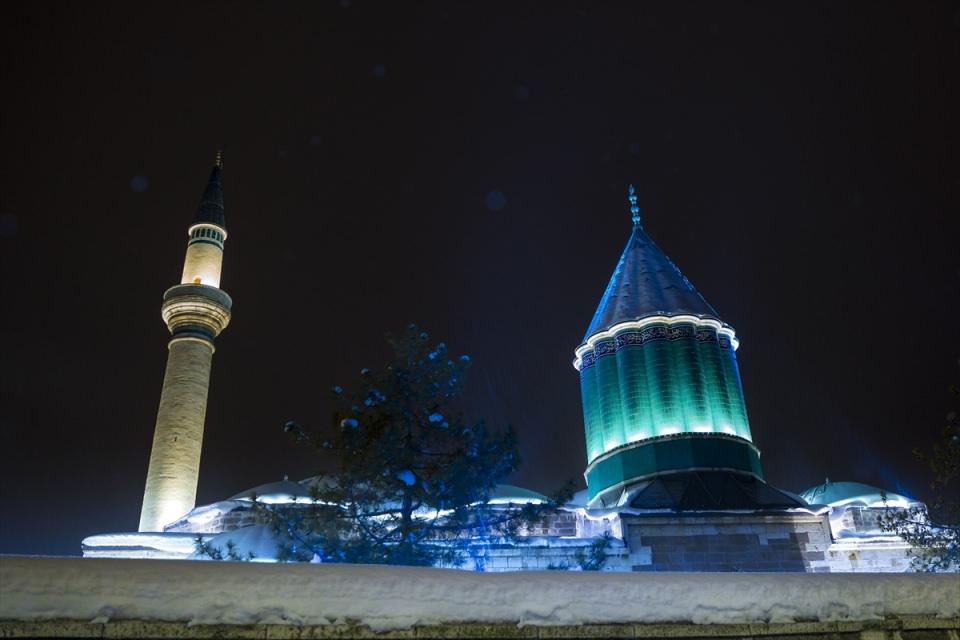 Konya kent merkezinde gece saatlerinde başlayan kar yağışı etkili oldu. Kar yağışı sonrası Mevlana Müzesi beyaza büründü.