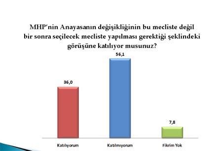 MHPnin anayasa değişikliğinin bu mecliste değil bir sonraki seçilecek mecliste yapılması gerektiği şeklindeki görüşüne araştırmaya katılan seçmenlerin yarıdan daha fazlası (yüzde 56,1) katılmazken, yüzde 36sı MHPnin bu tavrına katıldığını ifade etti. 29 Mart seçimlerinde oyunu MHPye verdiğini söyleyen seçmenlerin üçte birinden (yüzde 37) daha fazlası da kendi partilerinin değişiklik paketine karşı tavrını desteklemiyor.