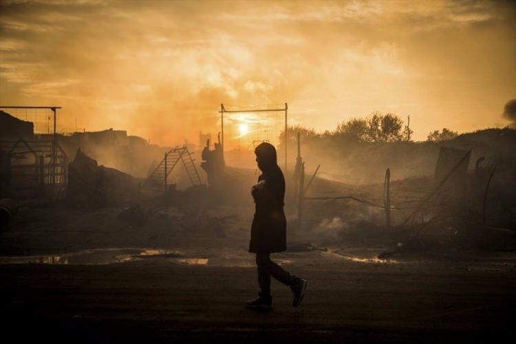 Fransa'nın Manş Denizi kıyısındaki Calais kentinde bulunan sığınmacı kampı Jungle'ın tahliyesinin üçüncü gününde çıkan yangının söndürülmesinin ardından güvenlik güçleri bölgede önlem aldı.