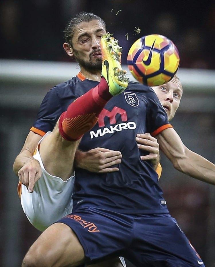 Spor Toto Süper Lig'de 10. haftanın açılış maçında Galatasaray ile Medipol Başakşehir, Türk Telekom Arena'da karşılaştı. Bir pozisyonda Galatasaraylı oyuncu Semih Kaya (26) ile Medipol Başakşehirli futbolcu Mehmet Batdal (9) mücadele etti.