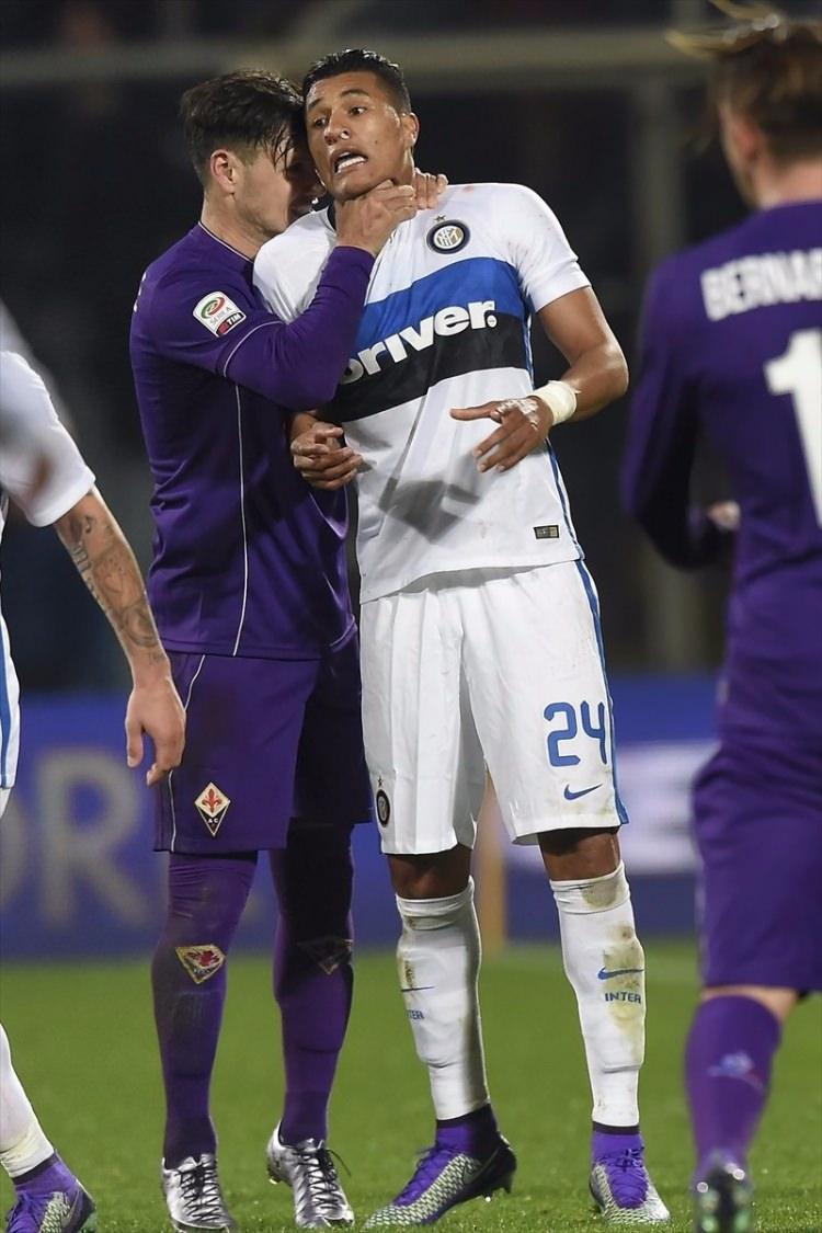 Fiorentina ve Inter Milan takımları, İtalya Birinci Futbol Ligi Serie A'da Floransa'daki Artemio Franchi Stadı'nda karşılaştı. Bir pozisyon sonrası Fiorentinalı Mauro Zarate (solda) ike Inter Milanlı Jeison Murillo arasında gerginlik yaşandı.