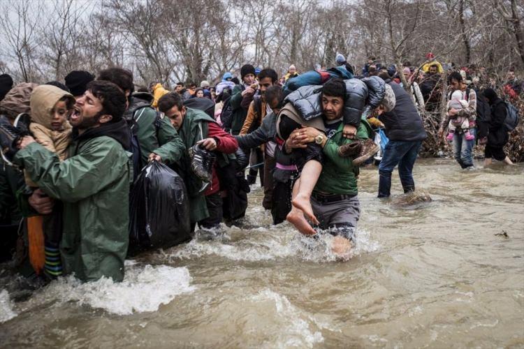 Yunanistan ile Makedonya sınırındaki İdomeni kasabasında uzun süredir bekleyen sığınmacılar, Makedonya'ya geçebilmek için iki ülke arasındaki nehrin içinden geçerek sınırı aşmaya çalıştı.
