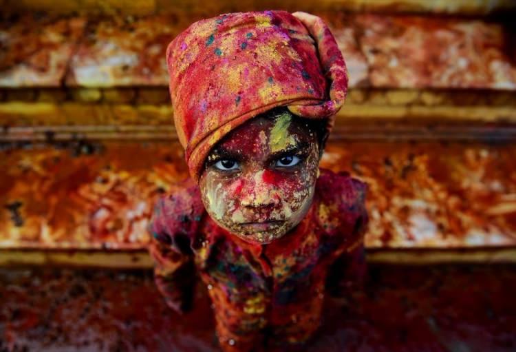 Hindistan'da ülkenin kuzeyindeki Mathura bölgesinde binlerce Hintli, Nandgaon köyündeki tapınakta bir araya gelerek Lathmar Holi'yi kutladı.