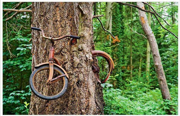 Ağaç küçükken bağlanmış ve orada unutulmuş bir bisiklet
