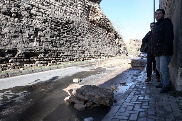 Topkapı Surlarında taşlar yola savruldu