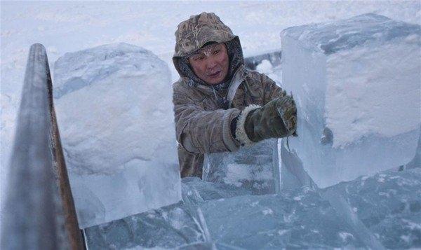 Sıcaklığın -48 dereceye kadar ulaştığı şehirde, kaskatı kesilmiş balıklar ekmek gibi yan yana diziliyor.