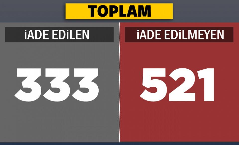 - İadesi istenen adi suçlu sayısı : 854 kişi