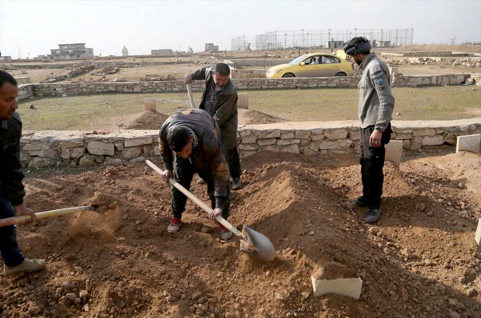Terör örgütü DEAŞ'tan önce mezarlıkta 4 görevli çalışırken, şu anki çalışan sayısı ise 10 civarında. Kentin doğu bölgesinde çatışma sesleri büyük oranda duyulmuyor ancak mezarlıkta sürekli yeni çukurlar açılmaya devam ediyor.