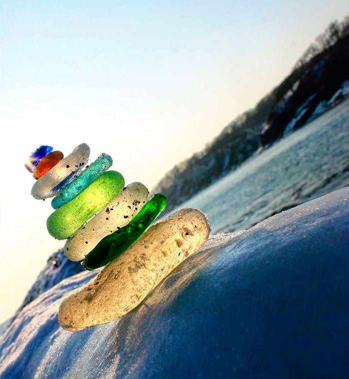 Okyanus, cam şişeleri rengarenk taşlar halinde geri verdi