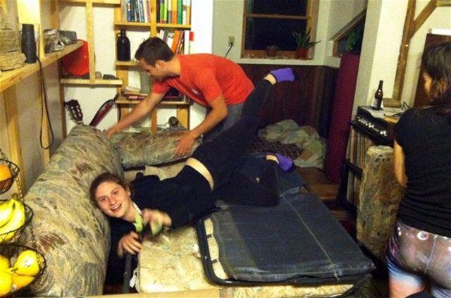 Üç arkadaş odalarına bir koltuk almaya karar verdi. Pahalı koltuk alamayacaklarından ikinci el ve sadece 20 dolara bir koltuk aldı.