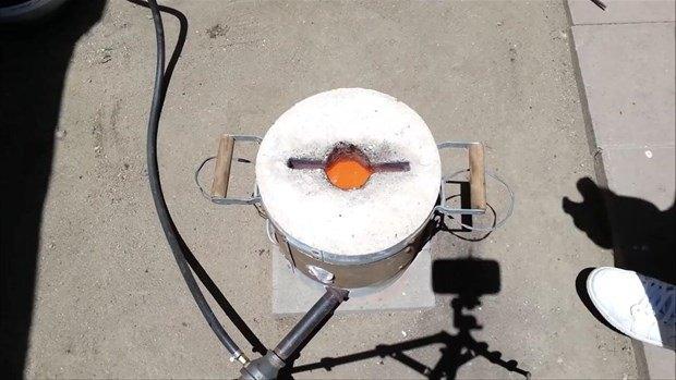 Erimiş bakırla çeşitli deneyler yapan adam bu defa karpuzla deneyini gerçekleştirdi.