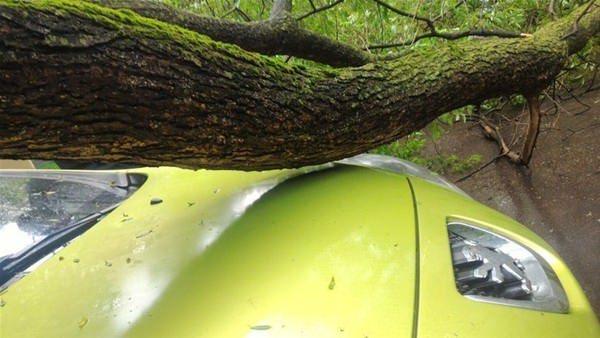 Çünkü aracına doğru yaklaştığında devrilen ağacın aracın kaputuna yalnızca birkaç santimetre kala durduğunu gördü. Talihli şoförün aracında en ufak bir çizik bile olmadı.