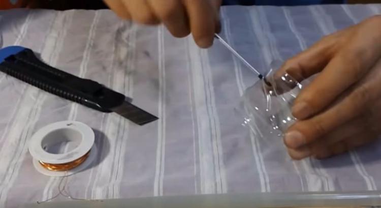 Pet şişenin her iki ucuna da delik açarak