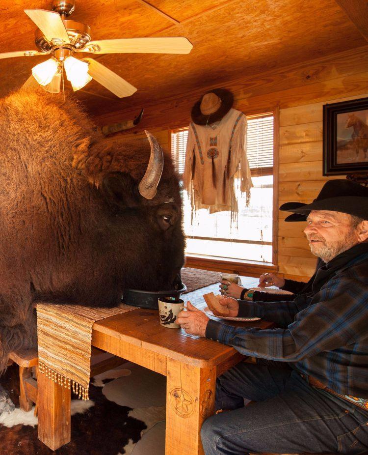 Evlerinde 300 kiloluk bizon besliyorlar!