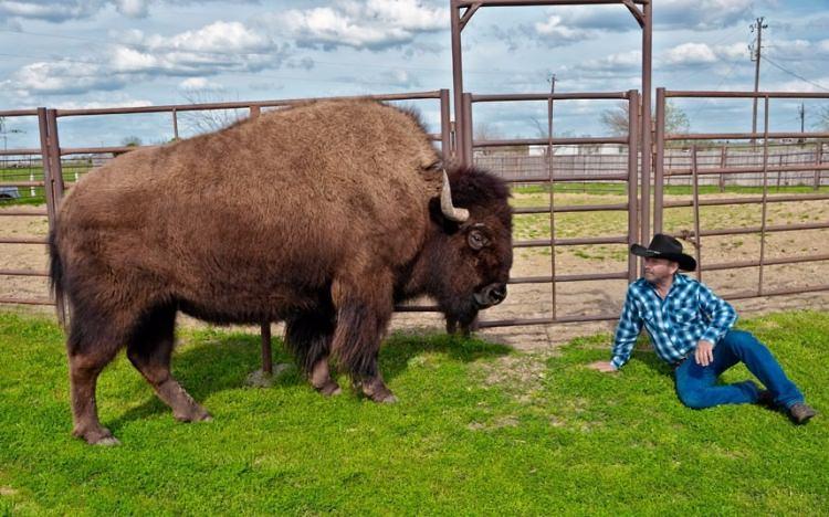 Evlerinde 300 kiloluk bizon besliyorlar!