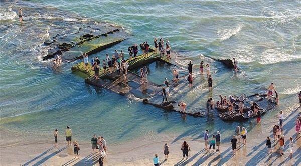 Gemi, 80 yıldır Coronado sahilinde bu halde duruyor ve çok nadir yaşanan deniz çekilmeleriyle gün yüzüne çıkıyor.