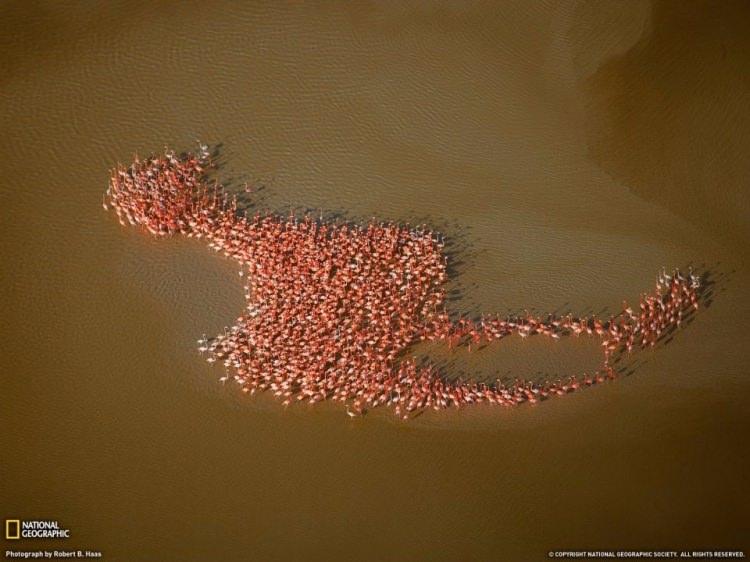 Flamingoların topluca oluşturdukları flamingo biçimi, Yucatan Yarımadası Meksika