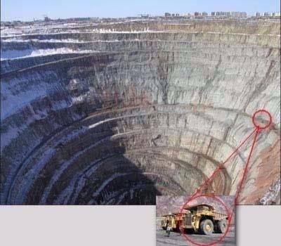 Çukurun ne derece büyük olduğunu anlamak için hafriyat taşıyan kamyonun çukurda ne kadar küçük kaldığını görmek yeterli oluyor.