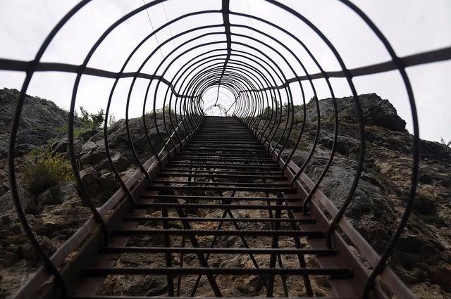 Kiliseye erişmenin tek yolu, pek güven vermeyen uzun bir merdiven.
