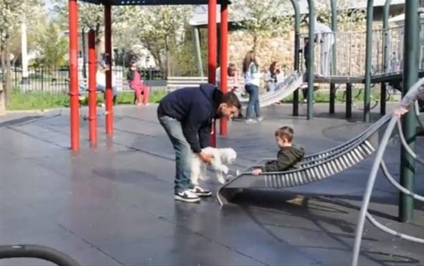 Bu görüntüler bir parkta çekildi. Çocuk parkında oynayan çocukların yanına yaklaşan bir şahıs, önce köpeğini çocuğa sevdirdi. Ardından çocuğa bir şeyler söyledi.