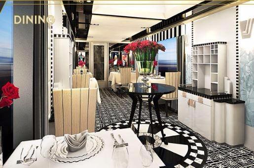 Trenin için tek kişilik ve çift kişilik odalar mevcut. Aynı zamanda balkonu olan bir de süit var. Her vagonda bir yemek odası bir yatak odası ve bir banyo mevcut.