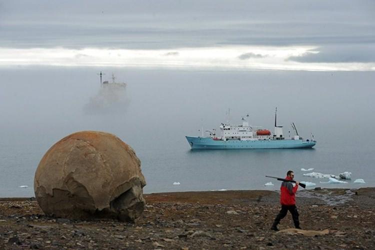 Rusya'nın kuzeyindeki Franz Josef takım adalarının orta bölgesinde yer alan Champ, devasa yuvarlak kayalarıyla ünlü.