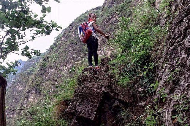 Çin’in Sichuan Eyaleti’nin Zhaojue kasabasında öğrenciler, evlerinden okullarına gidip gelmek için 800 m’lik uçurkasabasında umu inip çıkmak zorunda kalıyor.