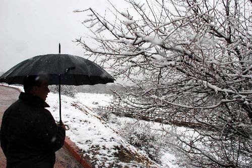 Nisan karı Abant'ı beyaza bürüdü