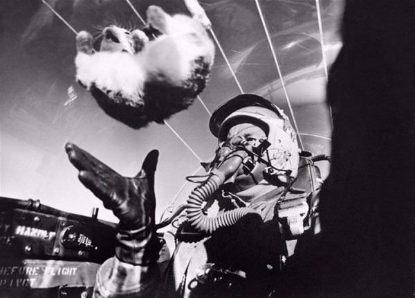 Bilim adamları 1958 yılında uzayda ağırlığın özelliklerini araştırırken yavru kedi kullandı ve bu deneyi Druey P. Parks jet alarak gerçekleştirdi.