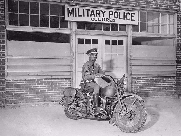 İkinci Dünya Savaşı esnasında siyah bir polisin motosiklet üstünde verdiği poz.